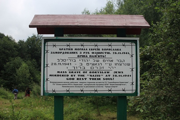 Шесть человек приехали из еврейских общин Москвы и Санкт-Петербурга, трое прилетели из США, были также двое израильтян, дедушка одного из которых чудом бежал из колонны евреев Борислава, которую вели на расстрел. Братскую могилу, где лежат земляки этого человека, мы приводили в порядок в ходе волонтерской экспедиции. Надо сказать, что в 1945-м уцелевшие евреи Борислава соорудили здесь стелу, почтив память 4000 расстрелянных собратьев.